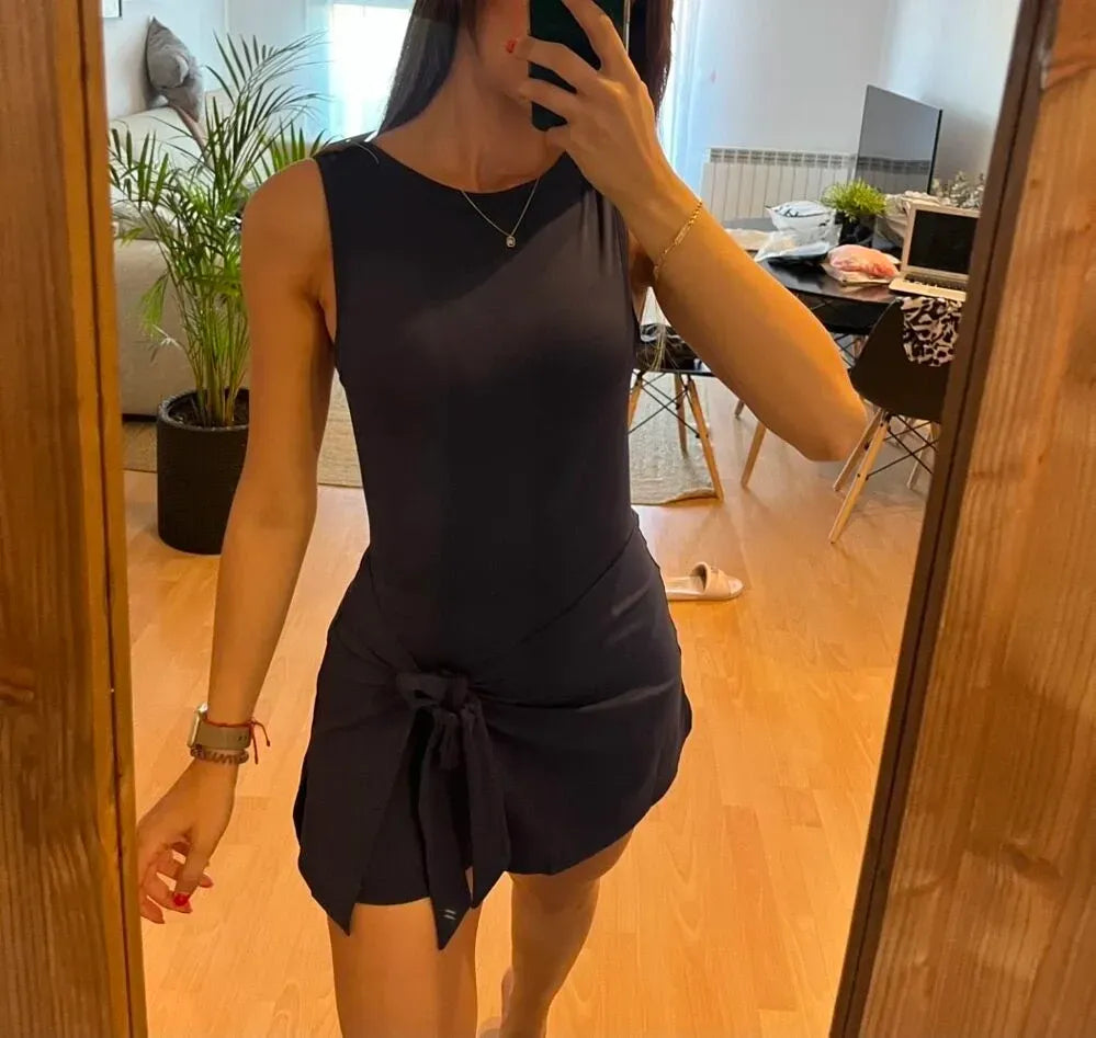 la mejor prenda que he comprado esta bellisima no me hace sudar casi nada, no aprieta y me queda super linda a parte la faldita me permite ajustarla si asi lo quiero